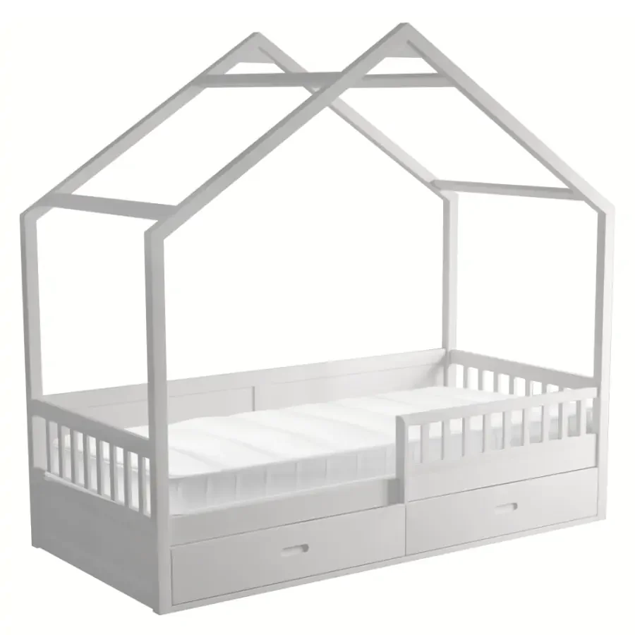 Oblíbená Montessori postel BIANKA o rozměru 90x200 cm se pyšní hravým domečkovým vzhledem, který nabízí bezpečné místo pro spánek i zábavu. Je vyrobená z kvalitního borovicového masivu a je nalakovaná v čisté bílé barvě, která snadno zapadne do každého dětského pokoje.