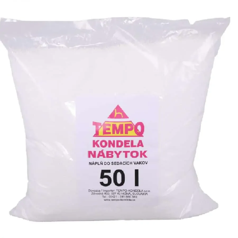 Náplň do sedacích vaků z EPS polystyrenových kuliček o objemu 50 litrů. Barva kuliček: bílá. Je zdravotně nezávadná a vhodná i pro alergiky, což z ní dělá bezpečnou volbu pro každého uživatele. Doplňování je snadné a rychlé, takže si můžete rychle upravit tuhost a pohodlí vaků dle potřeby. Dodává se v praktickém pytli, které usnadňuje skladování a manipulaci při doplňování.