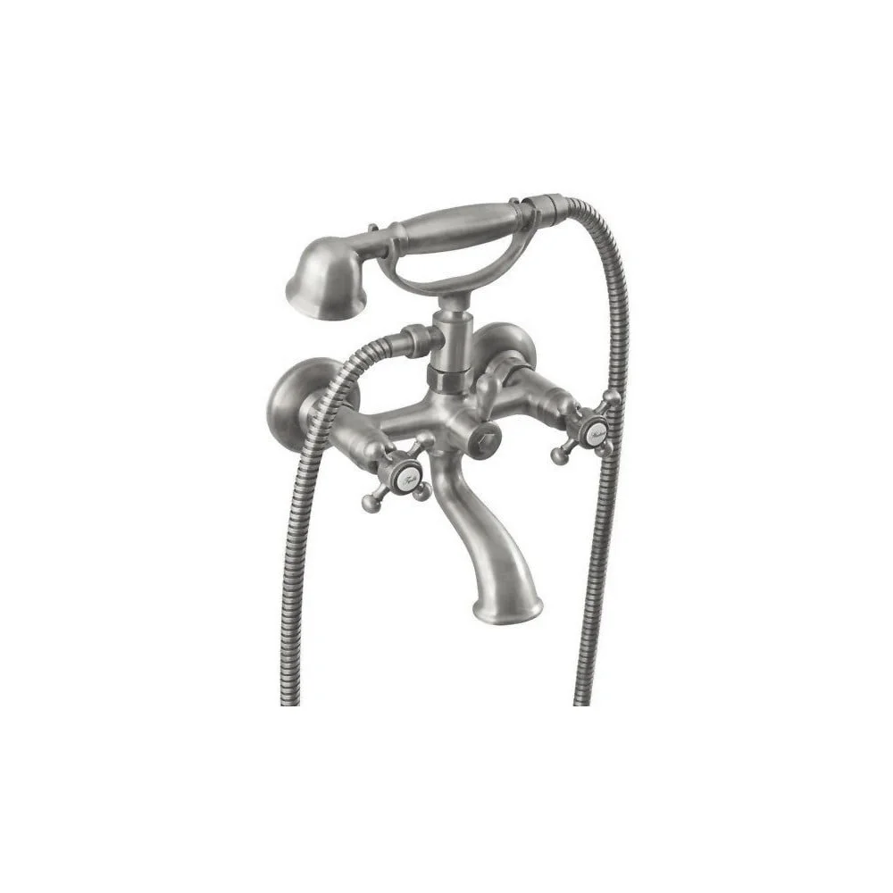 Stylová nástěnná vanová baterie v elegantním matném stříbrném provedení přináší nejen moderní vzhled, ale i jednoduchou obsluhu díky kohoutkovému ovládání. Součástí balení je praktická ruční sprcha s držákem a 170cm dlouhou hadicí, které umožní pohodlné použití.