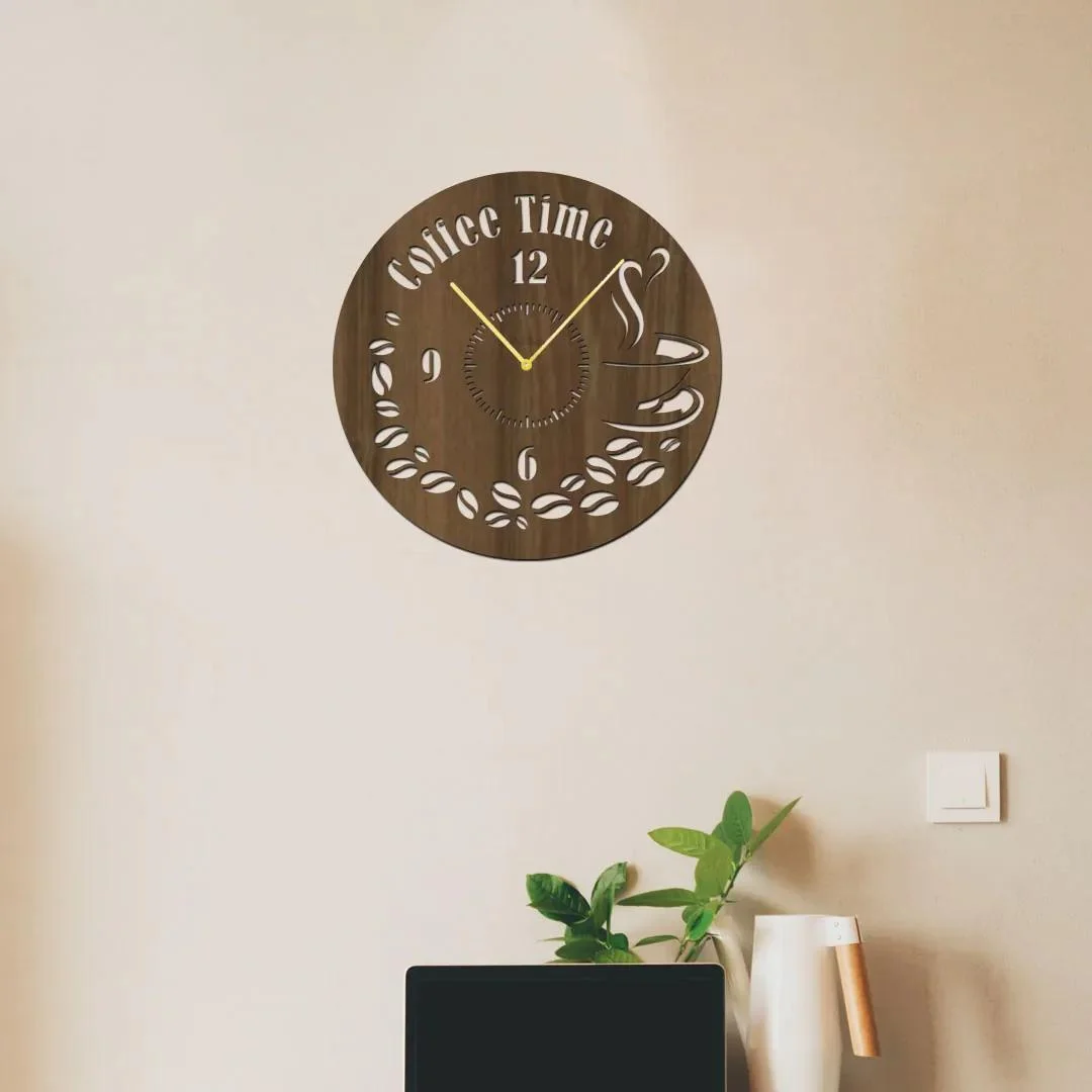 Stylové nástěnné hodiny Coffee Time v dekoru ořechové dřevo přinášejí do vašeho domova kombinaci elegance a praktického designu. Vyrobené z odolné vysokohustotní dřevovláknité desky, jsou nejen krásným doplňkem interiéru, ale také přesným ukazatelem času.