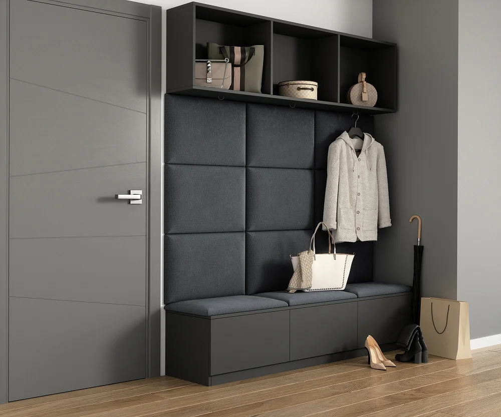 nástěnný panel Mateo je stylová ozdoba pro zeď nad postelí, v obývacím pokoji i v předsíni. Barva je tmavě šedá, vyvedená v textilii Monolith 97. Rozměry panelu jsou 180 × 120 × 40 cm a konstrukci tvoří pěna T21 s MDF deskou o tloušťce 6 mm. Instalace je snadná – panel lze pevně připevnit ke zdi vysokopevnostním lepidlem, přičemž je důležité nanést dostatečné množství lepidla a vyvarovat se styku s čalouněnou částí. Pro snadnější demontáž a úklid lze zvolit variantu se suchým zipem, kdy jedna část je na zeď a druhá na panel, což usnadní případné čištění prachu a demontáž. Díky neutrálnímu tónu se hodí do různých interiérů a díky své tloušťce 6 mm zůstává na zdi nenápadný.