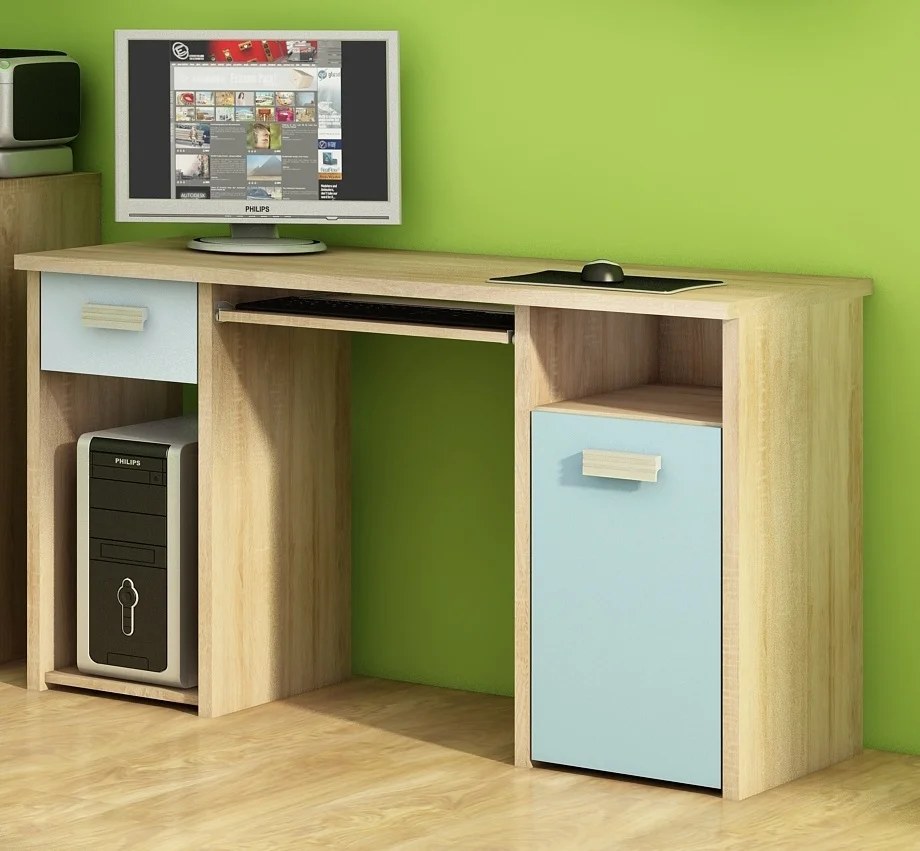 Studentský PC stůl NELLORE 1 spojuje moderní vzhled s praktickou velikostí pro domácí studijní koutek. Korpus z lamina o tloušťce 25 mm a dvířka z lamina 16 mm doplňují ABS hrany 0,6 mm, které zajišťují snadné čištění a dlouhou životnost.