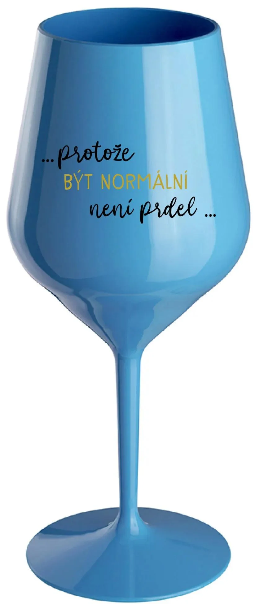 Objevte stylovou a odolnou modrou sklenici na víno s motivem ...PROTOŽE BÝT NORMÁLNÍ NENÍ PRDEL..., která je ideální pro venkovní i domácí použití. Díky její vysoké odolnosti a vyrobení z kvalitního polykarbonátu si víno můžete vychutnat kdekoliv bez obav z rozbití, ať už na zahradě, na pláži nebo při pikniku. Tento elegantní kousek se snadno přenáší díky ergonomickému tvaru, který příjemně sedí v ruce, a je navíc velmi lehký. Snadno se čistí a skladování je díky kompaktním rozměrům jednoduché. Přineste si do volného času kousek luxusu a užijte si své oblíbené víno kdykoliv a kdekoliv bez starostí o rozbití skla.