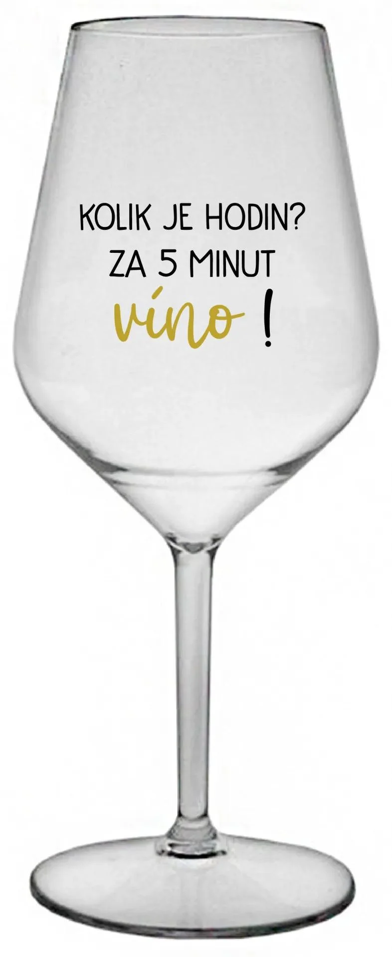 Parametry produktu Nerozbitná sklenice na víno 470 ml s motivem KOLIK JE HODIN? ZA 5 MINUT VÍNO!