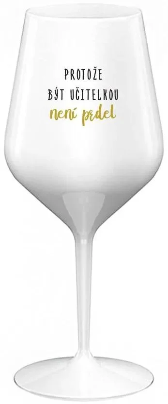 Elegantní bílá sklenice na víno s motivem 'Protože být učitelkou není prdel' je ideální pro pohodové chvíle na zahradě, na pláži nebo při pikniku. Vyrobena z odolného polykarbonátu, je téměř nerozbitná a odolná proti nárazům, což z ní činí perfektní společníka na cestách a při outdoorových aktivitách.