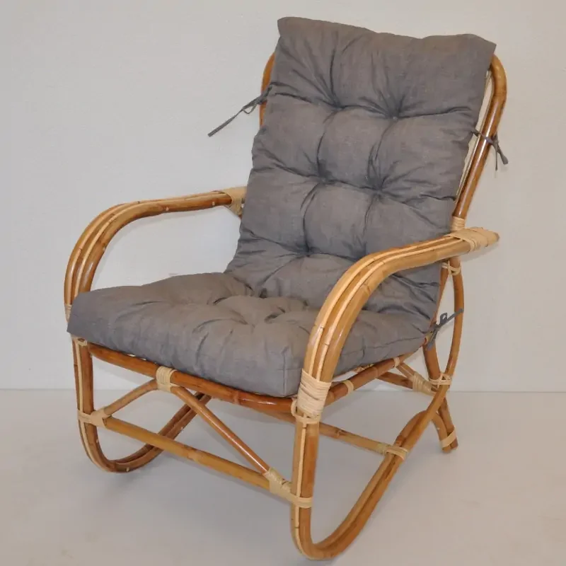 Nilam je ratanové křeslo vyrobené z přírodního ratanu typu semambo, které zajišťuje nadčasový vzhled a pevnou konstrukci. Polstrování v odstínu světle šedého melíru dodává interiéru moderní a jemný vzhled. Rám křesla má přírodní barvu a nosnost dosahuje až 110 kg. Rozměry křesla jsou 67 × 80 × 95 cm, výška sedu 43 cm, což zaručuje pohodlné sezení. Kvalitní polstr je vyroben v České republice, což potvrzuje vysokou kvalitu a dlouhou životnost.