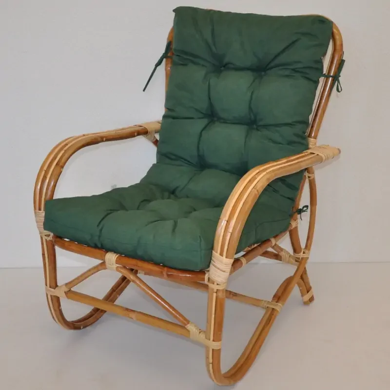 Nilam je křeslo z přírodního ratanu typu semambo s polstrem v tmavě zeleném melíru. Konstrukce křesla má přírodní barvu, která se hodí do různých interiérů i venkovních prostor. Nosnost křesla dosahuje 110 kg a rozměry jsou 67×80×95 cm, s pohodlnou sedací výškou 43 cm. Kvalitní polstr je vyrobený v České republice, což potvrzuje pečlivost a kvalitu materiálů. Díky přírodním materiálům působí křeslo nadčasově a navíc je údržba snadná, takže se skvěle hodí pro relaxaci na terase i v obývacím pokoji.