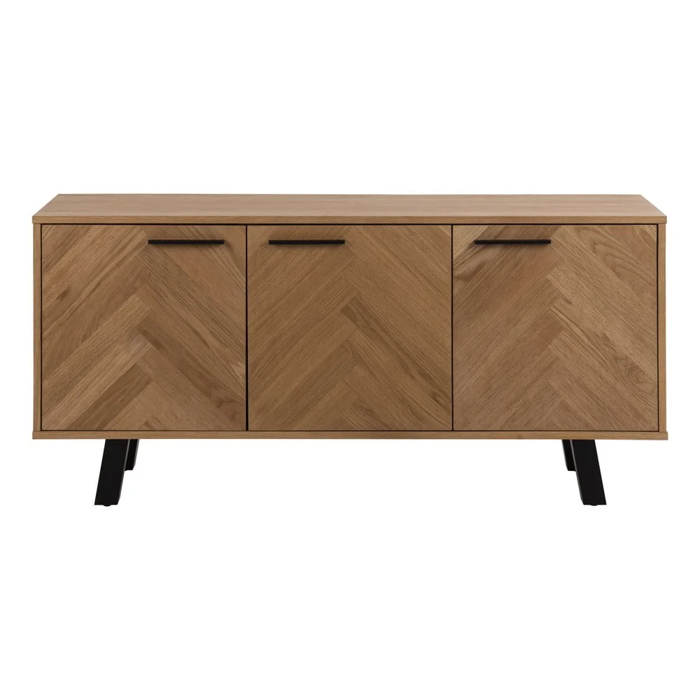Elegantní komoda Brighton od značky Actona představuje ideální spojení skandinávského rustikálního stylu s moderním designem. Vyrobena je z kvalitního dubového dřeva s výrazným vzorem rybí kosti, které dodává nábytku jedinečný vzhled.