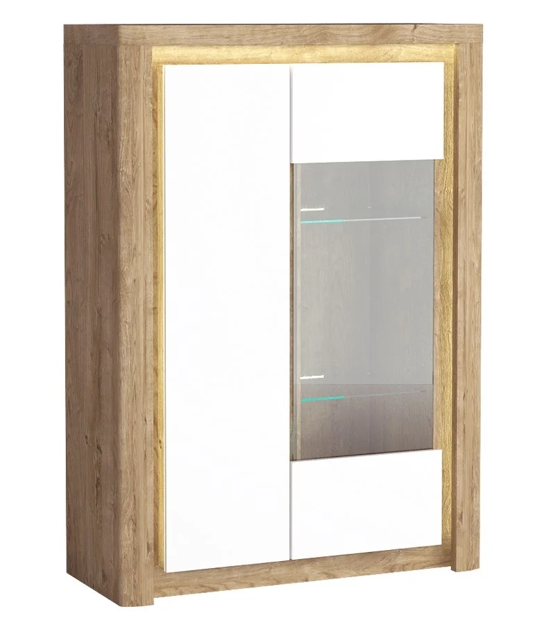Vitrína nízká FILIKA kombinuje moderní bezúchytový design se LED osvětlením, které efektivně zvýrazní vystavené předměty. Patří do sektorové řady a zpracováním vypadá skvěle v dubu ribbeck s bílým leskem. Rozměry činí 100 x 141 x 40,5 cm (š x v x h). Vyrobena je z kvalitního lamina s ABS páskou a doplněná MDF lištou se skleněnými prvky. Dvířka mají tichý dovírací systém a pravá část obsahuje tvrzené sklo, které podtrhuje eleganci vitríny. Díky pevnému zpracování a použitým materiálům se hodí do různých interiérů a poskytuje dlouhou životnost. Dodáváno v demontu pro snadnou dopravu a montáž.