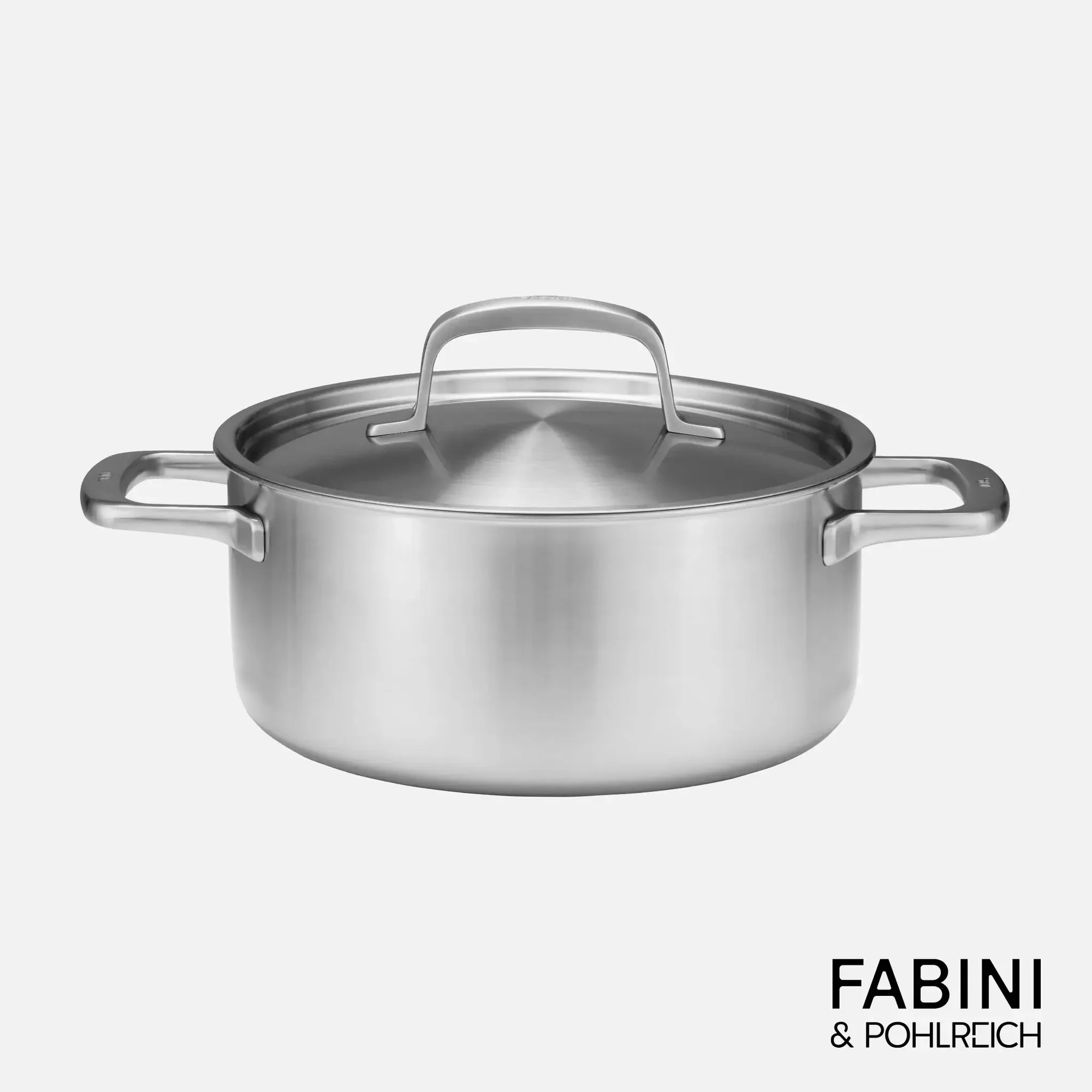 Fabini nabízí kvalitní nízký kastrol vyrobený z pětivrstvé nerezové oceli, který je ideální pro přípravu různých pokrmů. S průměrem 24 cm a objemem 4 litry poskytuje dostatek prostoru pro vaření větších porcí. Díky pevné poklici udržíte teplo a šťávu uvnitř, což zvýrazní chuť vašich jídel. Tento kastrol je nejen odolný a snadno se čistí, ale také skvěle zapadne do moderní kuchyně, kde oceníte jeho funkčnost a stylový vzhled. Perfektní volba pro každého, kdo chce vařit efektivně a s jistotou.