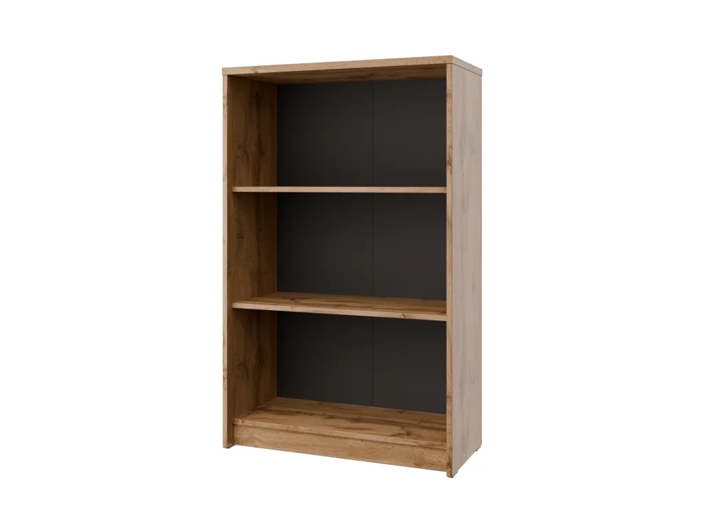 Nízký regál z lamina v provedení dub wotan s antracitovým akcentem je praktickým doplňkem každé kanceláře. Rozměry: šířka 72,5 cm, výška 115,8 cm a hloubka 33,8 cm poskytují stabilní základ pro dokumenty, knihy i dekorace.
