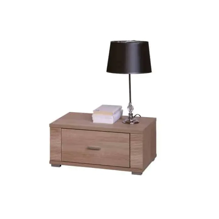 Noční stolek z programu GRAND je ideálním doplňkem pro každou ložnici. Jednoduchý a praktický design ukrývá jednu zásuvku, do které schováte drobnosti. Je vyroben z laminované dřevotřísky v dekoru dub sonoma a hrany končí vroubkovanou lištou, která dodává nábytku jemný detail. Dodáváno v demontu, montáž je rychlá a jednoduchá.