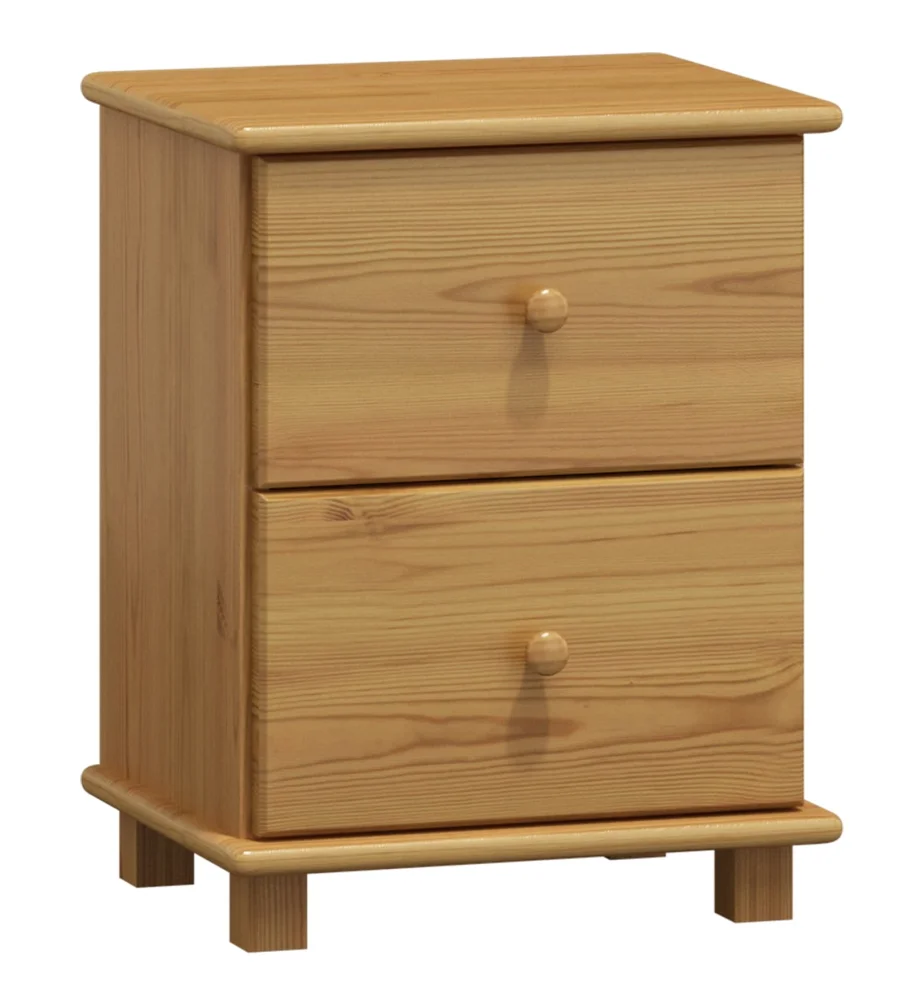 Moderní noční stolek LENEST Typ 4 s dvěma šuplíky poskytuje praktické místo pro drobnosti na nočním stolku. Zhotovený z masiv borovice s povrchovou úpravou v odstínu olše působí teplým a nadčasovým dojmem.