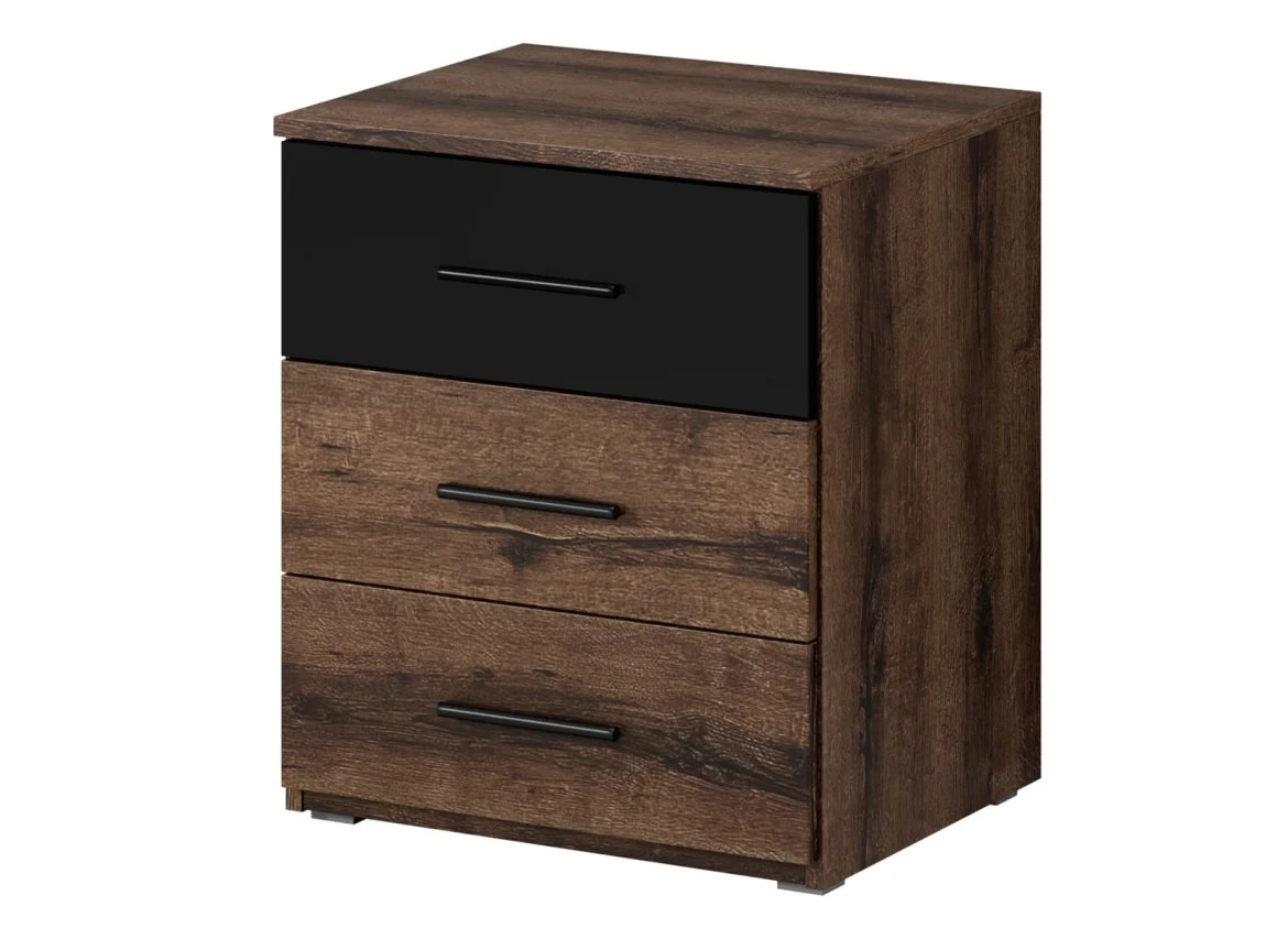 Noční stolek Maggie v dvoubarevném provedení kombinuje dub monastery s černým akcentem, díky čemuž působí moderním a nadčasovým dojmem v každé ložnici. Rozměry 46 cm (š) x 41 cm (hl) x 55 cm (v) udávají kompaktní prostorovou orientaci.