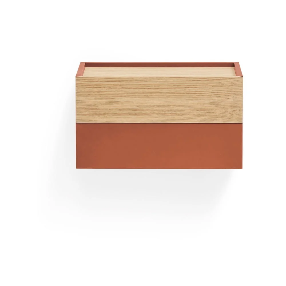 Otto je stylový noční stolek, který přináší do vaší ložnice přírodní atmosféru díky dekoru dubu a cihlové barvě. Tento kus nábytku je nejen praktický, ale také vizuálně atraktivní a snadno se hodí k různým stylům interiéru. Díky jeho kvalitní konstrukci a elegantnímu vzhledu si můžete být jisti dlouhodobou spokojeností a pohodlím při každodenním používání. Tento noční stolek je ideální volbou pro ty, kdo hledají kombinaci funkčnosti a designové originality.