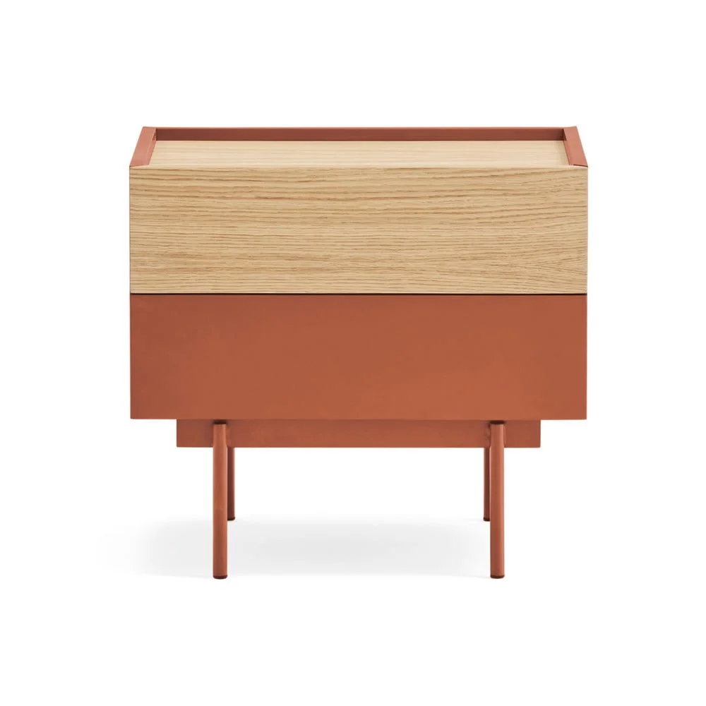 Noční stolek Otto v dubovém dekoru a cihlově-přírodním odstínu Noční stolky