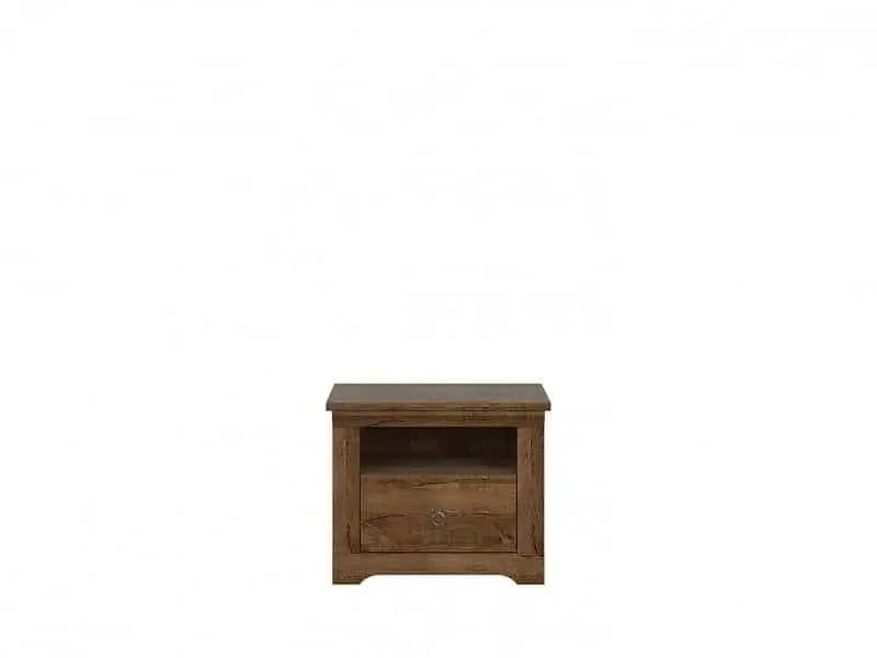 Noční stolek Patras KOM1S vyniká jednoduchými liniemi, které se hodí do každé moderní ložnice. Na vrchní desce najdete otevřenou odkládací plochu pro drobnosti, časopisy či lampu a pod ní je praktická zásuvka s kovovou úchytkou ve starožitném stylu.