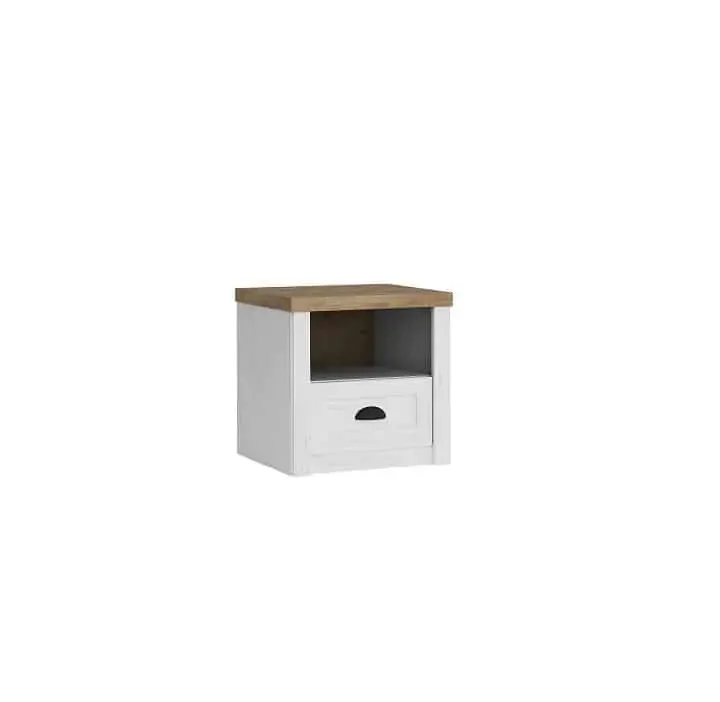 Noční stolek z řady PROVANCE SN spojuje stylový vzhled s praktickým úložným prostorem. Vyroben z laminované dřevotřísky s povrchovou úpravou v dezénu sosna Andersen / dub Lefkas, působí teplo a moderně. Stolek disponuje jednou zásuvkou a prostorným odkládacím prostorem pro vaše drobnosti. Dodáváno v demontu, ale montáž je rychlá a součástí je kompletní balení pro jednoduchou instalaci. Díky odolné povrchové úpravě je údržba snadná a tento kousek skvěle doplní ložnici i díky možnosti navázat na další prvky PROVANCE.