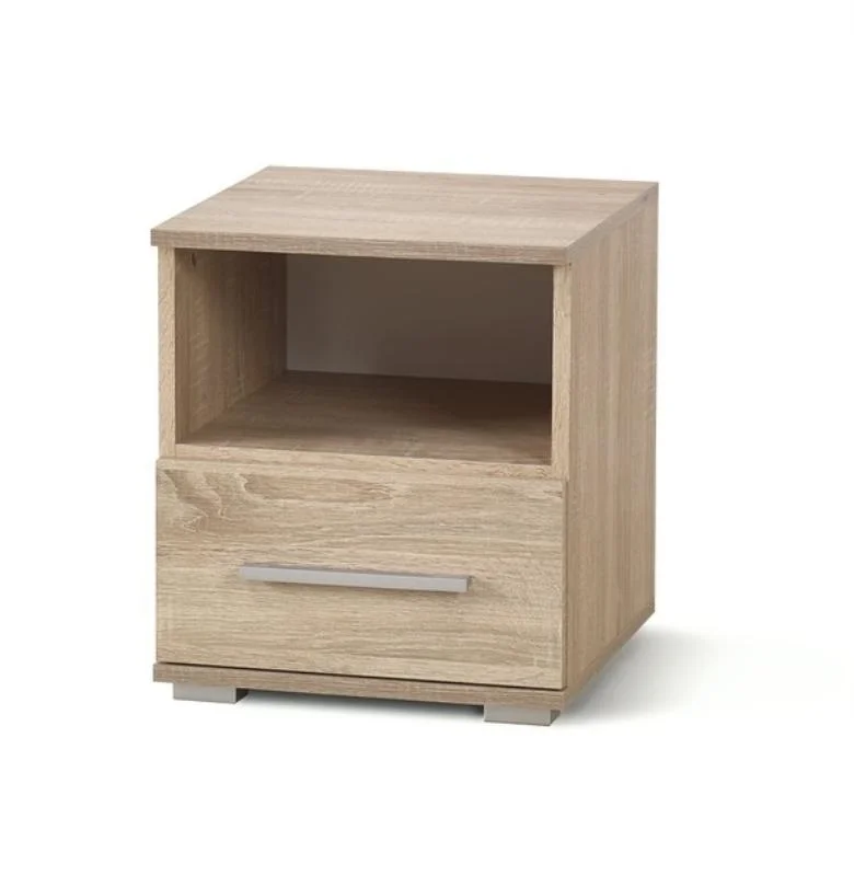 Praktický noční stolek vyrobený z laminovaného materiálu lamino v dekoru dub sonoma se skvěle hodí do moderní ložnice. Rozměry 39 × 40 × 44 cm nabízejí dostatek úložného prostoru vedle postele.