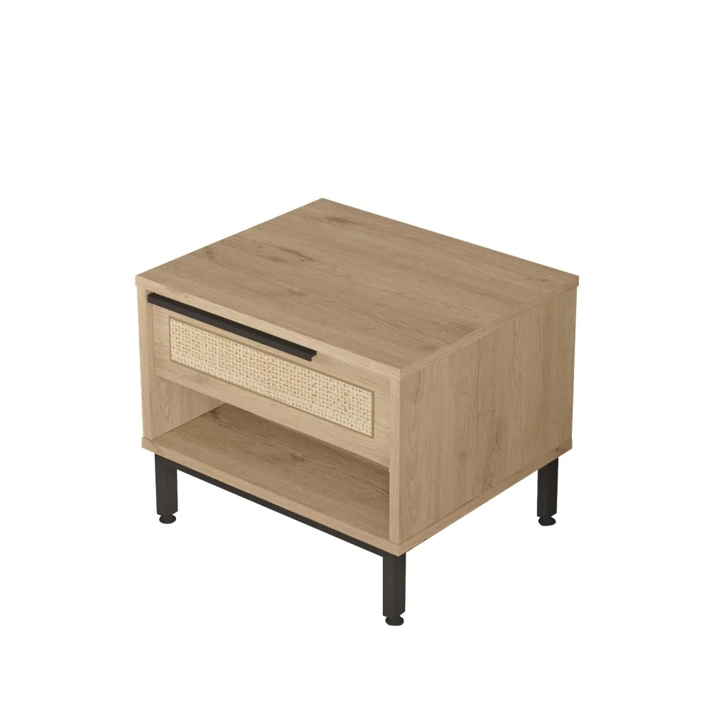 Kovové nohy zajišťují pevnou oporu a jistotu při každodenním používání. Díky prostornému úložnému prostoru – horní plocha pro lampu či budík a otevřená police spolu s zásuvkou – budete mít nezbytnosti vždy po ruce. Odolný a stylový doplněk pro ložnici s důrazem na kvalitu a snadnou údržbu, který skvěle doplní každý interiér. Rozměry: šířka 53,6 cm, výška 42,4 cm, hloubka 44,5 cm. Přidejte si tento kousek do ložnice a těšte se na každodenní pohodlí, které nabízí.