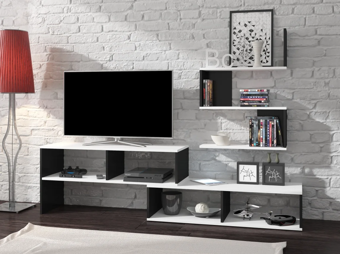 Obývací stěna Albany působí svěžím dojmem díky kombinaci bílého lesku a černých detailů, které dodají prostoru moderní nádech. Je vyrobena z LTD 16 mm desek pro pevnou a dlouhodobou stabilitu. Rozměry jednotlivých částí zahrnují TV stolek 180 x 48 x 35 cm a police 58 x 80 x 17 cm, takže máte dostatek místa pro televizi, multimédia i dekorace. Dodává se v demontu, což usnadňuje přepravu a montáž podle dispozic vašeho pokoje. Záruka 5 let vám poskytuje jistotu kvality a dlouhodobého bezproblémového používání.