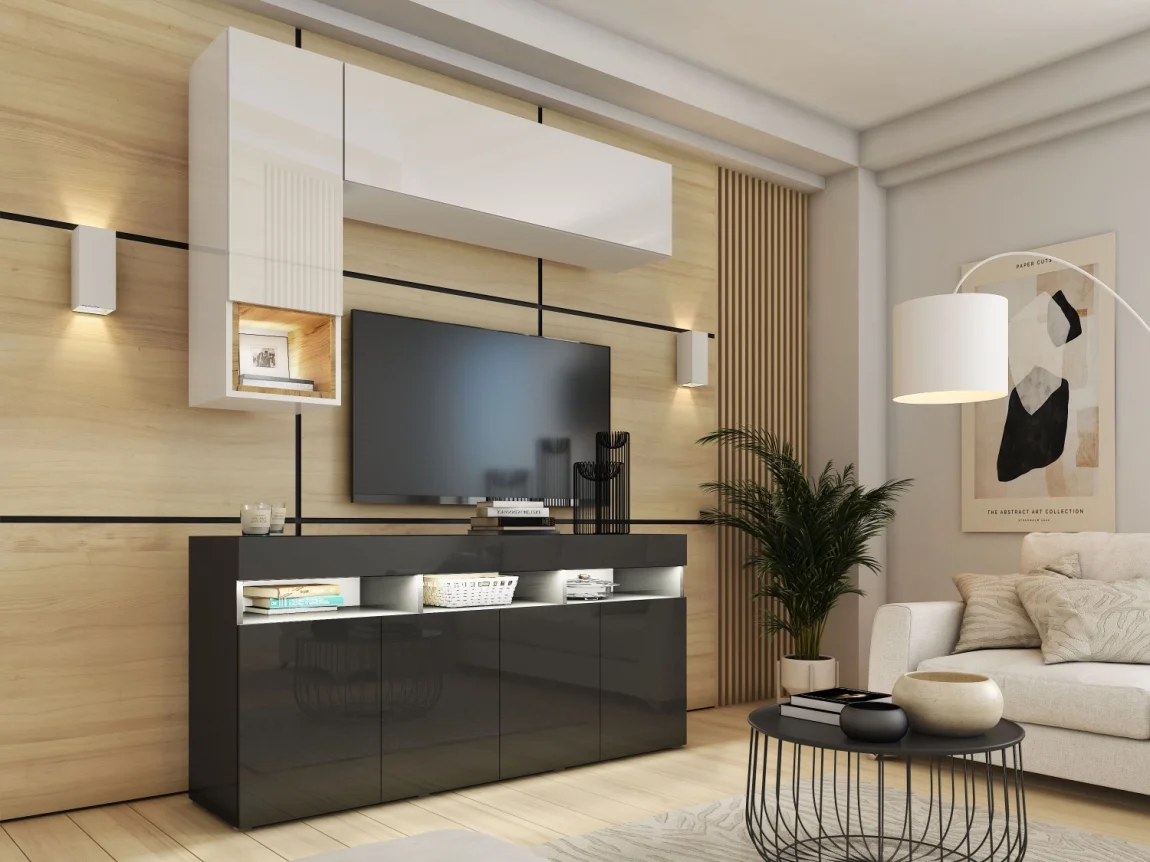 Obývací stěna ANTOFALLA 2 – černá a bílá lesk Obývací stěny