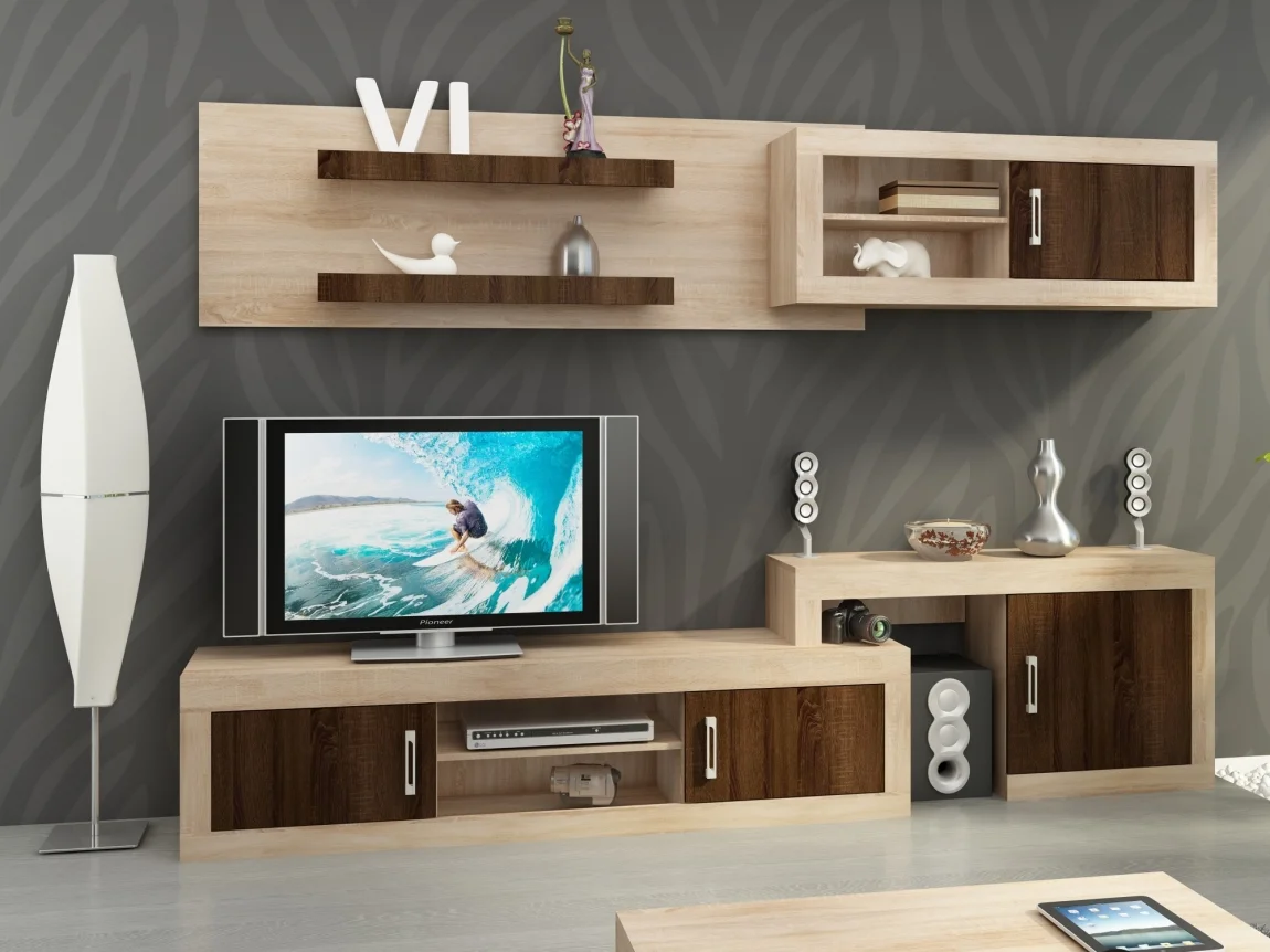 GOUDINI 1 nabízí modulární uspořádání obývacího pokoje v kombinaci dub sonoma a tmavý dub, které snadno přizpůsobíte prostoru. Součástí sestavy je RTV stolek 180 x 44 x 44 cm, nízký regál 120 x 65 x 34 cm a závěsná skříňka 240/260/270 x 58 x 34 cm s možností volby šířky 240, 260 nebo 270 cm.