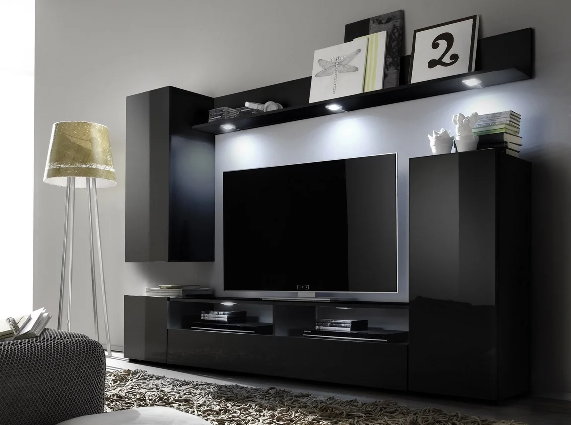Obývací stěna POLSET 1 – černá mat / černý lesk Obývací stěny
