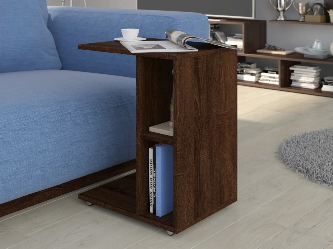Odkládací stolek THEINA v provedení dub sonoma tmavý představuje stylový doplněk do obýváku či ložnice. Deska z LTD je pevná a snadno se čistí, odolná proti poškrábání a vhodná pro každodenní použití.