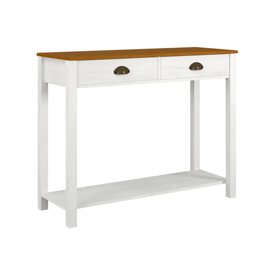 V jeho útrobách naleznete dvě zásuvky s kovovými úchytkami a pojezdy a jednu polici, která poskytuje dodatečný prostor pro knihy a drobnosti. Bílý lak doplněný hnědým tónem působí svěže a snadno se sladí s různými interiéry, čímž oživí váš prostor. Praktické a stylové řešení pro rychlé uspořádání a pohodlný přístup k uloženým věcem.