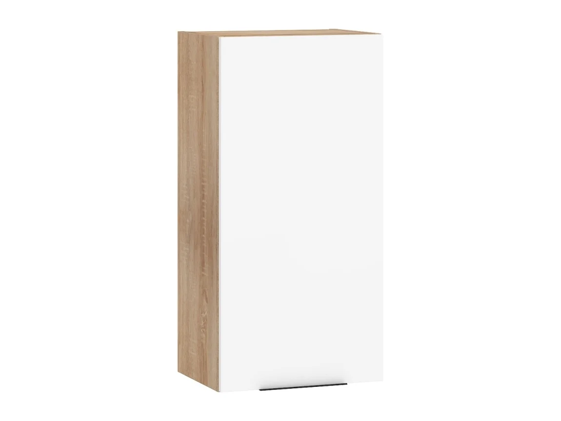 Elegantní závěsná skříňka OSMAK 1DPN kombinuje dub sonoma s lesklým bílým povrchem a černým úchytkem pro moderní vzhled. Rozměry 40 x 80 x 32 cm poskytují dostatek úložného prostoru pro koupelnu i předsíň.