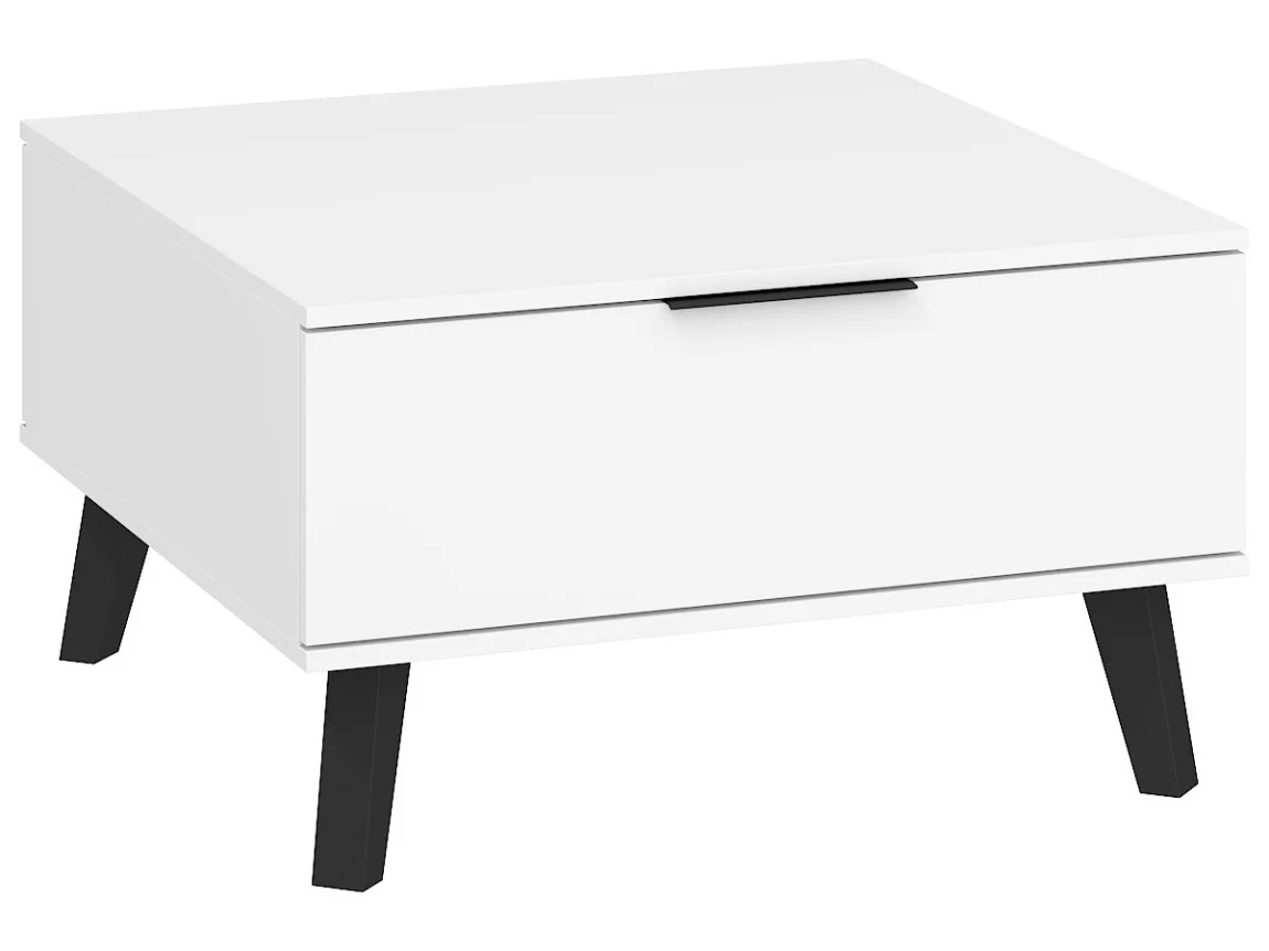 Kompaktní konferenční stolek OSMAK nabízí praktický úložný prostor se výklopnými dvířky po obou stranách a bílým lesklým povrchem. Dvířka se otevírají a tiše dovírají, takže ukládání drobných věcí je pohodlné a neruší zvuk.