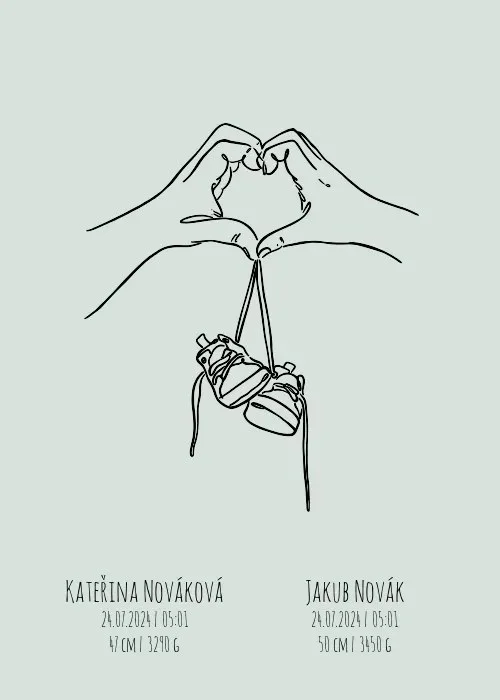 Tato ilustrace symbolizuje radostnou zprávu o vašem nadcházejícím rodičovství, ať už očekáváte holčičku nebo chlapečka – hlavně, že prcek bude zdravý. Připomeňte si ty neopakovatelné chvíle, kdy jste zjistili, že se stanete MAMINKOU nebo TATÍNKEM. K tomu všemu můžete ještě přidat jméno, datum narození a míry svého miminka, čímž vytvoříte opravdu osobní a srdci blízkou památku. Tento ručně vytvořený suvenýr bude krásnou připomínkou pro vás i vaše blízké.