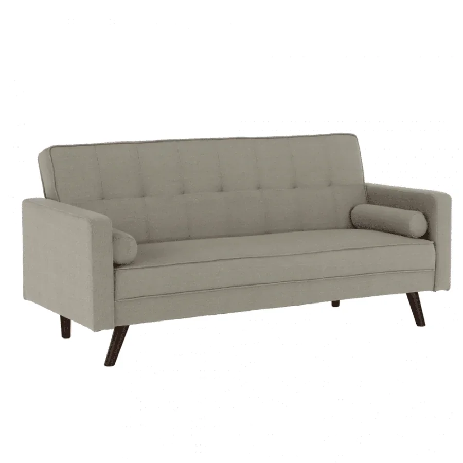 Moderní pohovka OTISA v duchu skandinávského designu kombinuje jednoduché linie s pohodlím pro každodenní odpočinek i občasné spaní. Po rozložení vznikne lůžko 170x105 cm, které nabídne pohodlný spánek hostům i vám. Potah v neutrální šedohnědé taupe barvě se snadno sladí s širokou škálou barev a vzorů. Základ tvoří pevná dřevěná konstrukce s dlouhodobě stabilními nožkami. Opěrku lze uzamknout i v relaxační poloze pro pohodlné sezení. Prošívané čelo doplňují dva válcové polštáře pro extra oporu a styl. Hloubka sedu 50 cm zajišťuje komfort po dlouhé sezení. Dodáváno v demontu.