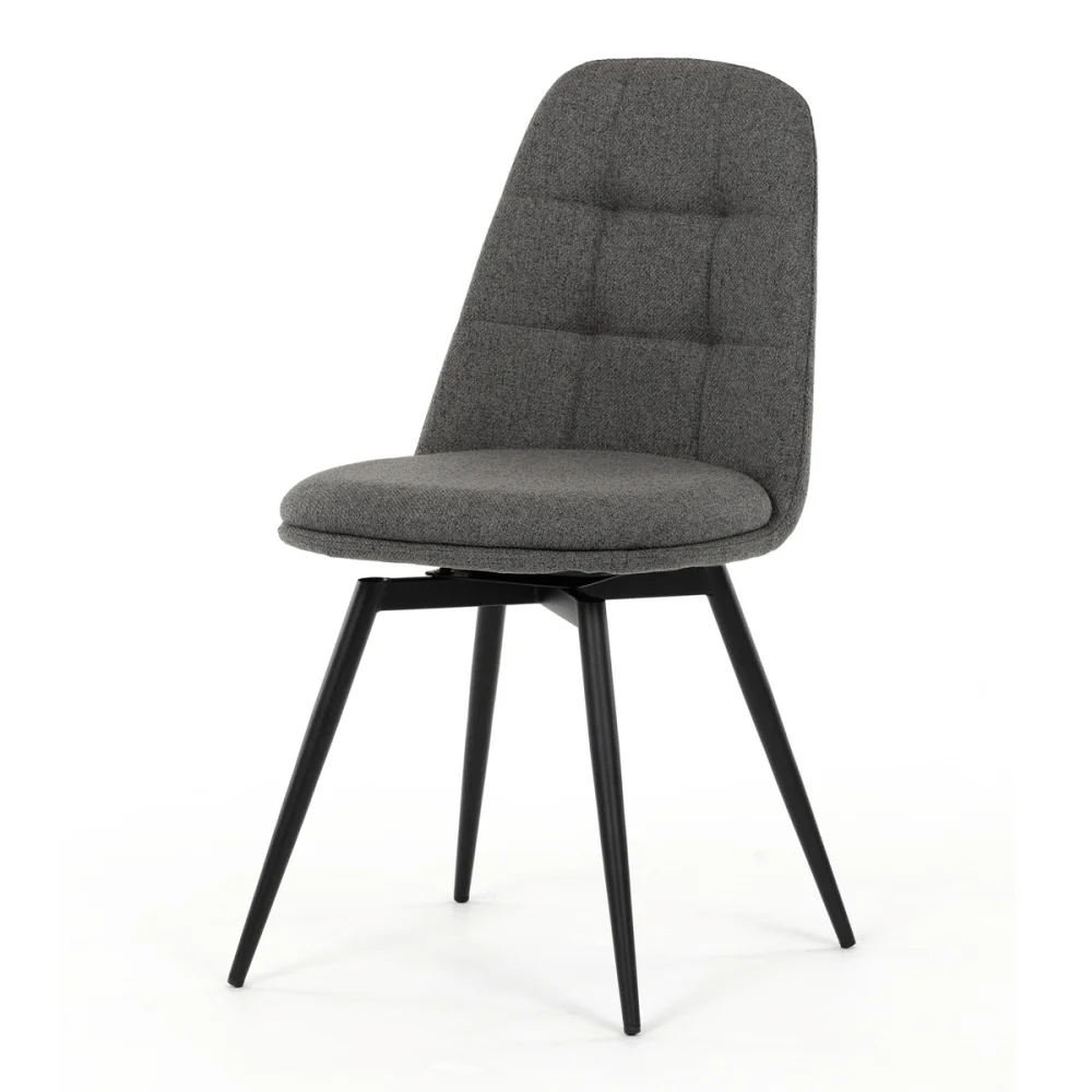 Otočná jídelní židle JORLEMKAL v šedé látce s černými kovovými nohami dodá jídelně moderní vzhled a pohodlí. Sedák je měkký, čalouněný látkou a vyplněný PU pěnou, což zajišťuje komfort i při delších sezeních.