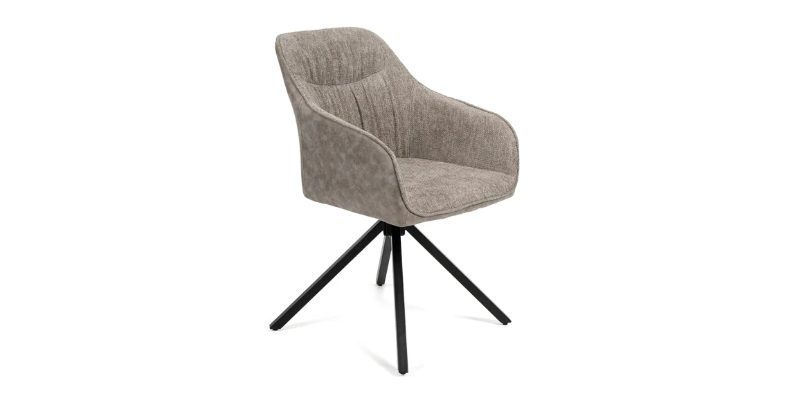 Elegantní otočná židle ROSBEL kombinuje moderní vzhled s pohodlným čalouněním v šedé látce a bytelným kovovým rámem. Sedák a opěrák jsou potaženy měkkým čalouněním, které se snadno udržuje, zatímco stabilní kovová podnož zajišťuje dlouhou životnost.