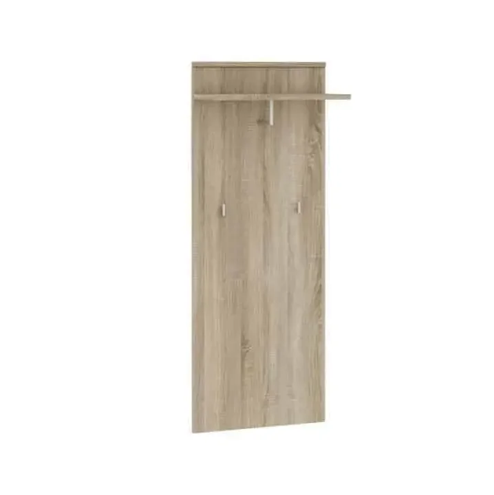Na panelu se pak nacházejí dva věšáky pro rychlý přístup k oděvům. Materiál tvoří laminovaná DTD v dekoru dub sonoma, který se snadno udržuje a dlouho vydrží. Kvalitní slovenský výrobek zaručuje spolehlivost a precizní zpracování. Nosnost police až 5 kg, takže pořídíte spolehlivý úložný systém pro každodenní použití. Dodáváno v demontu.