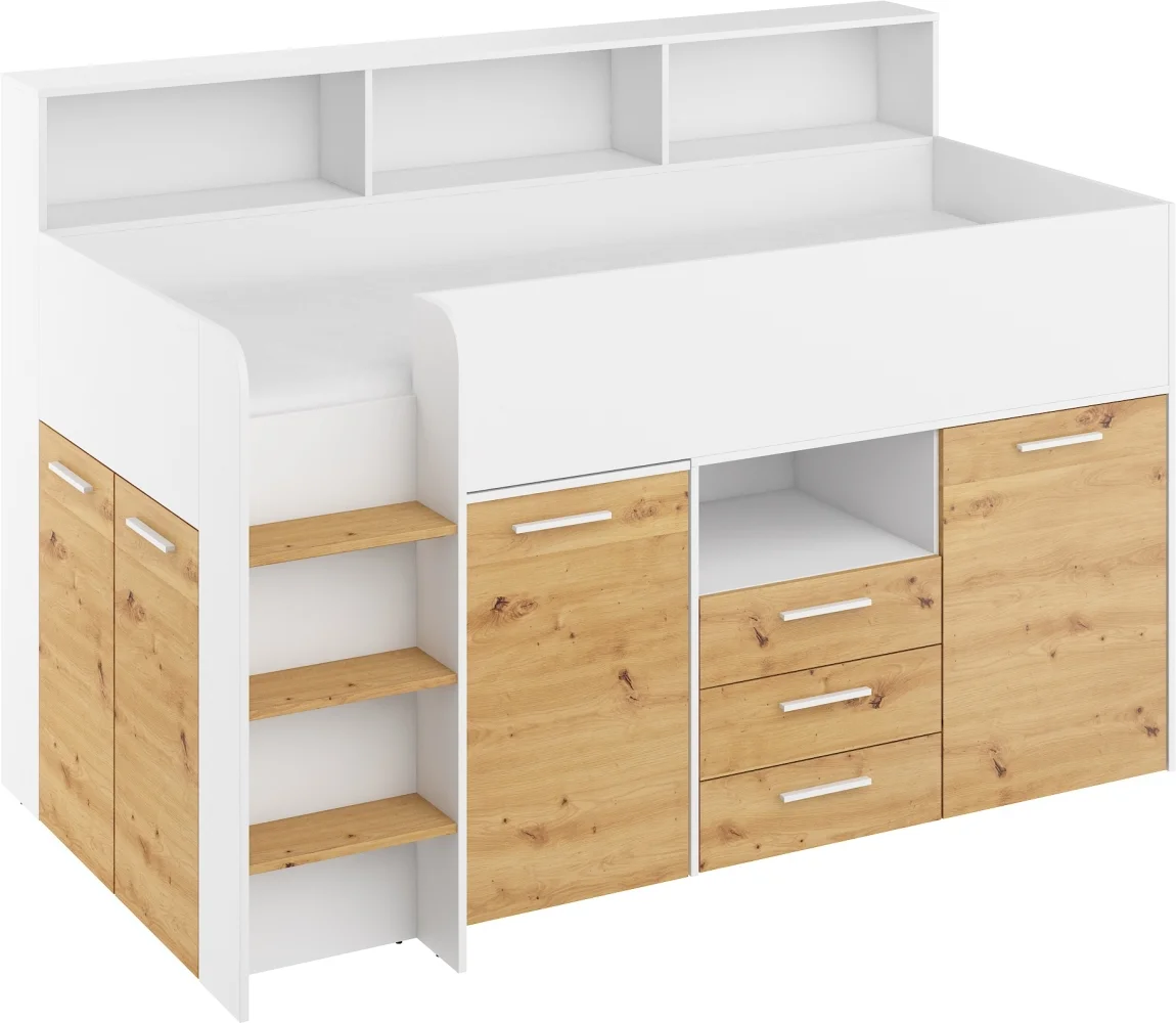 Patrová postel DAGOBERT levá, bílá/dub artisan, 80x200 cm, 5 let záruka Dětský pokoj