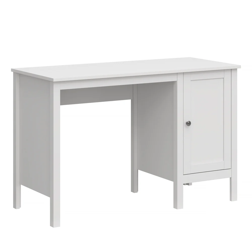 PC stůl GLOMERATA ze sektorové řady v bílé povrchové úpravě kombinuje moderní design s praktickým uspořádáním pro váš pracovní kout. Povrch tvoří laminovaná dřevotříska s ABS hranami a dvířka z MDF, což zajišťuje odolný povrch a snadnou údržbu. Rozměry: 115 cm šířka, 74,5 cm výška a 50 cm hloubka; nožky mají výšku 16 cm. Dodáváno v demontu, montáž je rychlá a jednoduchá. Díky svému kompaktnímu provedení se hodí do menších prostor a poskytuje místo pro monitor, klávesnici i dokumenty, přičemž působí čistě a pořádkově.