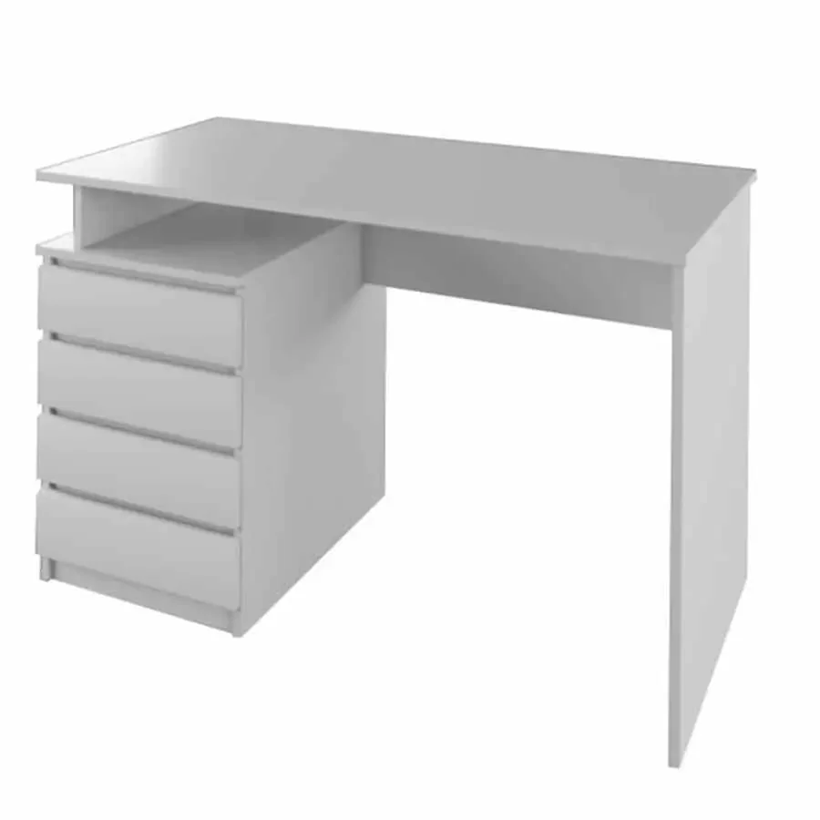 Elegantní PC stůl HANY NEW s praktickými šuplíky nabídne moderní vzhled a dostatek místa na váš notebook, dokumenty a kancelářské potřeby. S velkou pracovní plochou a prostornými šuplíky získáte pevný základ pro efektivní práci a minimalistický dojem z prostoru. Stůl je vyroben z laminované DTD desky s ABS hranami v bílé barvě, která zaručuje čistý vzhled a snadnou údržbu. Šuplíky se posouvají na kovových lištách a doplňují je plastová kolečka pro pohodlné posouvání. Prostor pro židli má šířku 72,6 cm, výšku 73 cm a hloubku 47,5 cm; tloušťka materiálu činí 16 mm. Produkt je kvalitní slovenský výrobek a dodává se v demontovaném stavu.