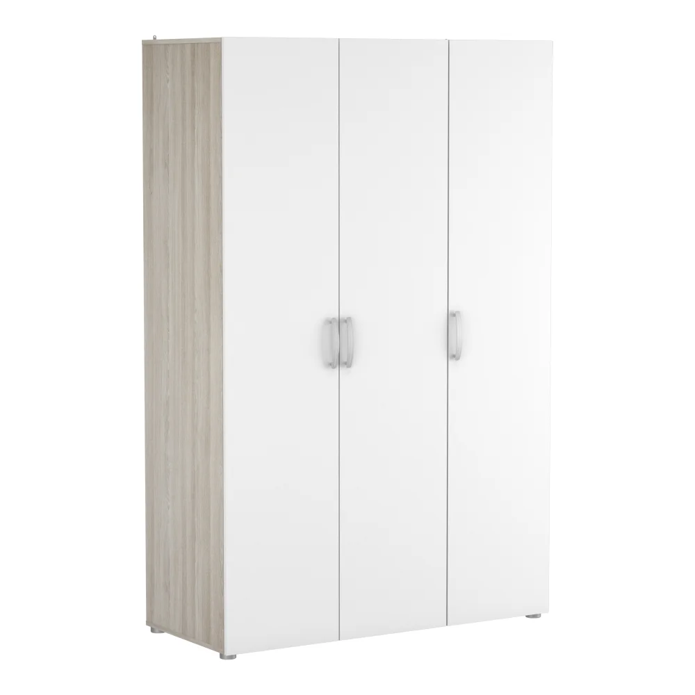 PERK třídvéřová šatní skříň, bílá/dub Shannon Skříně a skřínky