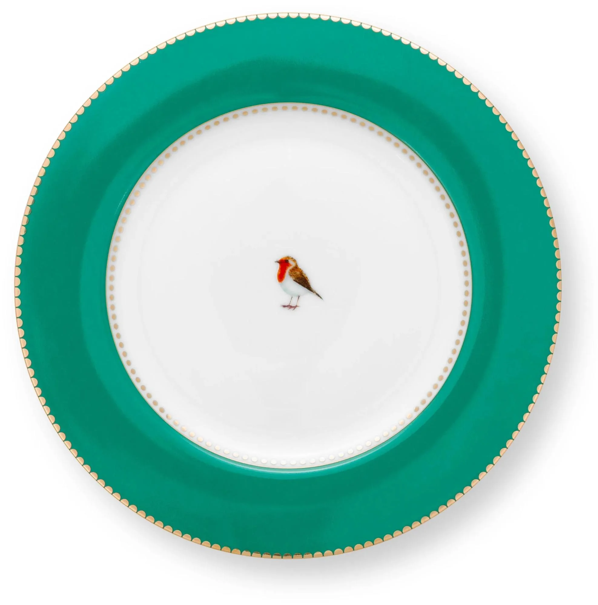 Objevte kouzlo kolekce Love Birds od Pip Studio s tímto elegantním dezertním talířkem o průměru 17 cm. Tento kousek je zdobený jemným zeleným okrajem s třpytivými zlatými detaily, které dodávají luxusní nádech.