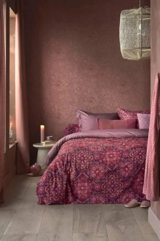 Pip Studio Mosaico je stylové povlečení vyrobené z broušeného kepru 100% bavlny s vysokou gramáží 200 TC, který je příjemně hřejivý a jemný na dotek. Díky speciálnímu povrchu je tento materiál nejen elegantní, ale i odolný a příjemný pro každodenní použití. Design Mosaico představuje dlaždicovitý vzor, jehož barevná paleta zahrnuje odstíny růžové, vínové a levandulové, jež se harmonicky doplňují. Tento originální motiv je ideální pro ty, kteří hledají výrazný a zároveň elegantní doplněk do ložnice. Povlečení je vybaveno praktickým zipovým uzávěrem na přikrývku a ozdobnou vázačkou na polštář, což zajišťuje pohodlné používání a stylový vzhled. Přidejte do své postele dekorativní polštářky a válečky ze stejné kolekce, například Mosaico quilted polštář nebo Mosaico roll, pro dokonalý vzhled. Díky snadnému praní na 60°C a možnosti sušení v sušičce či volně na vzduchu je údržba jednoduchá a praktická. Tento povlečení je skvělou volbou pro všechny, kdo si chtějí zpříjemnit spaní s luxusním a originálním designem, který zaručí útulnou atmosféru vaší ložnice.