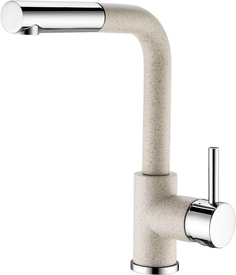 Elegantní kuchyňská baterie Aquastone AQ 5591 v pískovém provedení nabízí praktický a stylový design. Díky vytažitelné koncovce poskytuje snadnou manipulaci a flexibilitu při mytí. Celková výška baterie činí 269 mm, což ji činí ideální volbou pro jakoukoliv kuchyňskou desku.