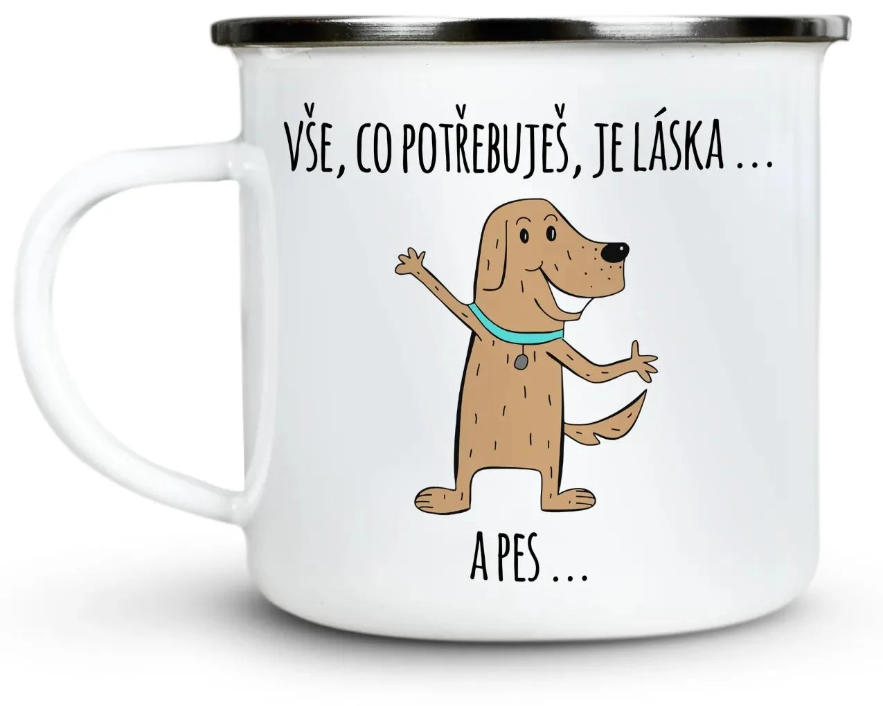 Začněte každý den s radostí díky našemu stylovému plecháčku s motivem Láska a Pes. Vyrobený z kvalitního kovu s pečlivě navrženým potiskem, který rozveselí vaše ráno a dodá šálek kávy nebo čaje osobní nádech.