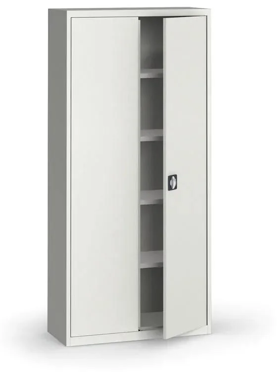 Díky dostatečné vzdálenosti mezi policemi je snadné vložit větší pořadače, například do výšky 335 mm. Výška skříně umožňuje umístění až pěti řad pořadačů pro různé potřeby. Dveře jsou pevné, vyztužené proti prolomení, a mají komfortní pákový mechanismus s cylindrickým zámkem, který zajistí bezpečnost uložených věcí. Povrchová úprava práškovou barvou zaručuje odolnost vůči poškození a korozi. K dispozici jsou varianty s šedým nebo šedočerným povrchem, stejně tak široký výběr barevných dveří v odstínech šedé, modré, červené či zelené, což umožňuje sladit skříň s vaším pracovním prostředím. Tato skříň je ideální volbou pro dílny, sklady či průmyslové prostory, kde je potřeba spolehlivého a přizpůsobitelného úložného řešení.