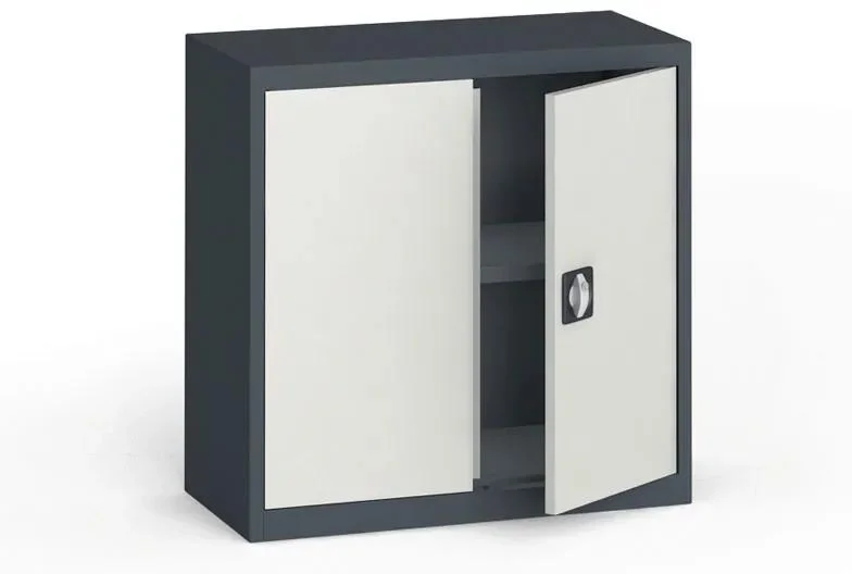 Praktická police je nastavitelné v rozestupu 70 mm a unese až 60 kg, což umožňuje snadné uspořádání různorodého nářadí či dokumentů. Díky dostatečnému prostoru mezi policemi, například 335 mm, lze pohodlně vložit i větší pořadače. Výška skříně umožňuje umístění 2, 3 nebo 5 řad pořadačů podle celkové výšky (800, 1150 nebo 1950 mm). Křídlové dveře s vnitřními závěsy jsou vybavené robustním pákovým mechanismem a dvourozvorovým uzávěrem s cylindrickým zámkem, který chrání uložené věci. Dveře jsou navíc vyztužené proti prolomení a opatřené plastovými dorazy. Povrch je upraven kvalitní vypalovací práškovou barvou, dostupná v šedé (RAL 7035) nebo šedočerné (RAL 7016) variantě. Skříň je nabízena v několika barevných provedeních, včetně šedé, modré, červené nebo zelené, takže snadno sladíte s ostatním vybavením dílny nebo skladu. Tato odolná skříň je skvělým řešením pro zabezpečení a přehledné uspořádání vašeho nářadí či materiálu.