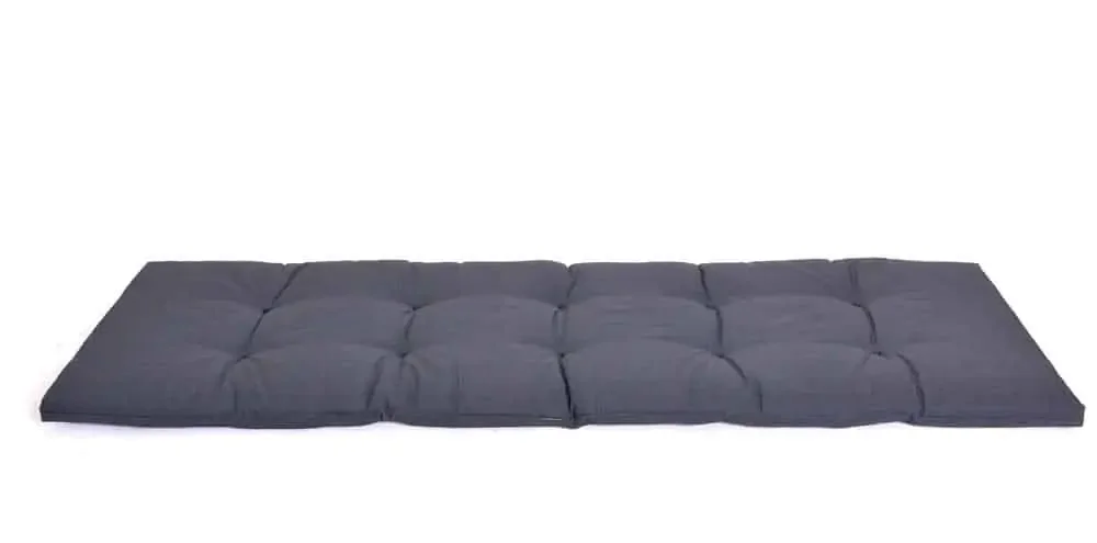 Výplň s tloušťkou 6 cm poskytuje pevnou oporu a pohodlí i při delším sezení. Vzor má tmavě šedou barvu, která se hodí k široké škále zahradního a relaxačního nábytku. Užívejte si klidné chvíle odpočinku a mějte jistotu stabilního sezení. Tip: zvažte použití slunečníku pro ochranu proti UV záření, čímž prodloužíte životnost potahu.