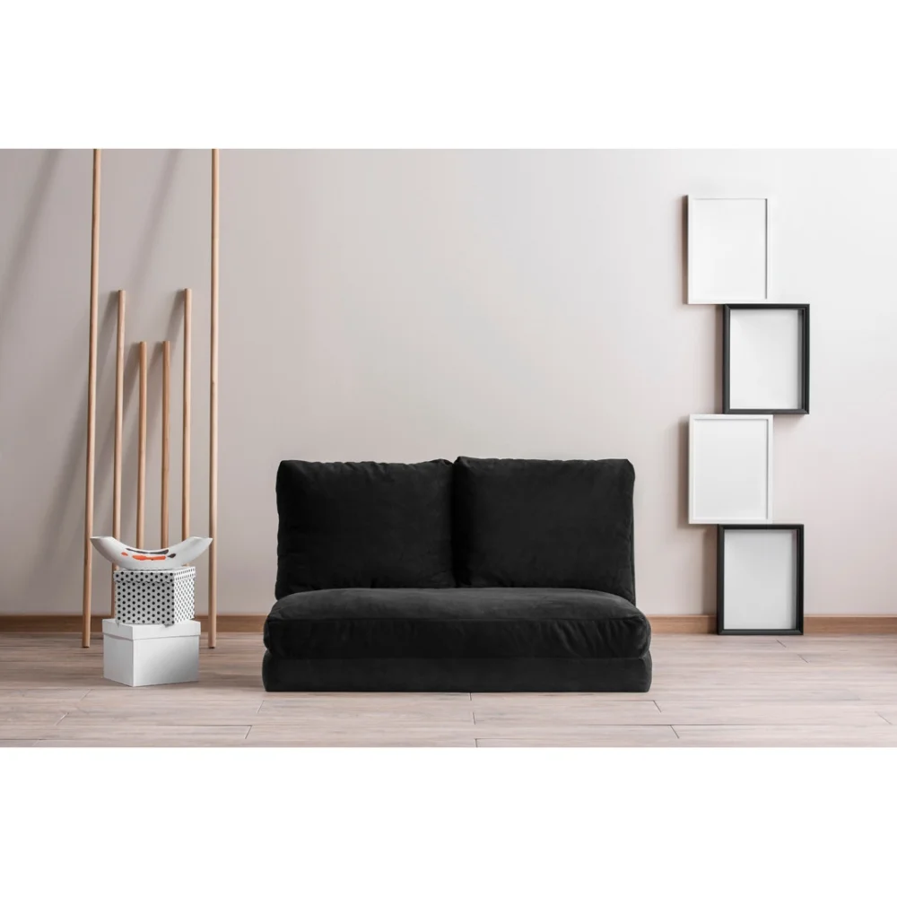 Pohovka Daisy je navržena kolem kvalitního kovového rámu a potažena 100% polyesterem, což zaručuje dlouhou životnost a snadnou údržbu. Sedací plocha má hloubku 68 cm, šířku 120 cm a výšku sedu 26 cm, zatímco rozkládací část vytváří pohodlnou lůžkovou zónu s délkou 117 cm a šířkou 120 cm. Celkové rozměry postele činí 185 x 120 cm a tloušťka sedáku dosahuje 26 cm. Pro podporu zad je k dispozici pěnová výplň a opěradlo s výškou 36 cm, které lze nastavit v 5 úrovních, aby bylo možné najít ideální úhel při čtení, sledování televize či odpočinku. Nosnost až 200 kg a elegantní černá barva dělají z tohoto kousku praktickou volbu do různých interiérů; dodáváno v demontu.