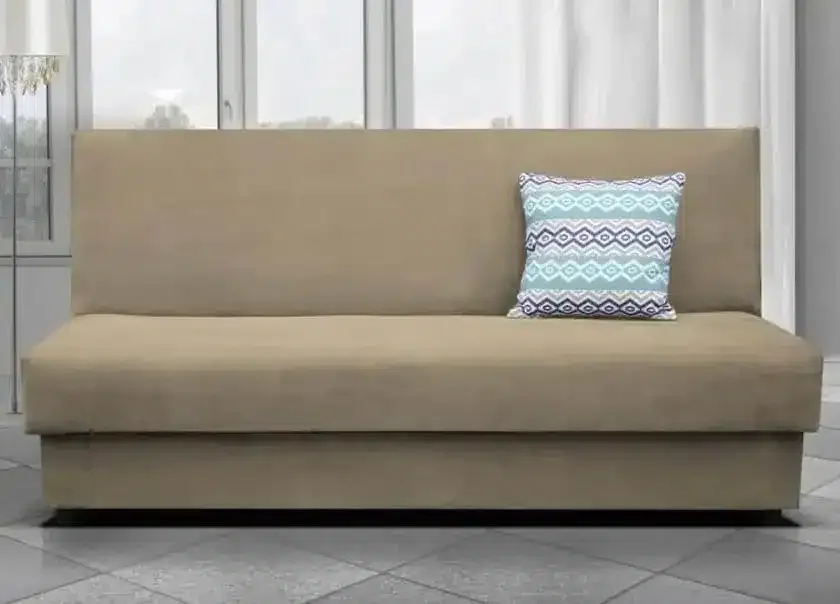 Rozkládací pohovka s úložným prostorem nabízí místo pro lůžko, deky či polštáře a zároveň šetří místo v pokoji. Sedák kombinuje bonellové pružiny s kvalitní PUR pěnou pro komfort během sezení. Systém klik-klak umožňuje rychlé a snadné rozložení na lůžko. Je k dispozici v béžové variantě a v balení bývá malý dekorační polštářek; ostatní dekorace na fotografiích nejsou součástí. Hloubka sedu: 48 cm, Výška sedu: 35 cm.
